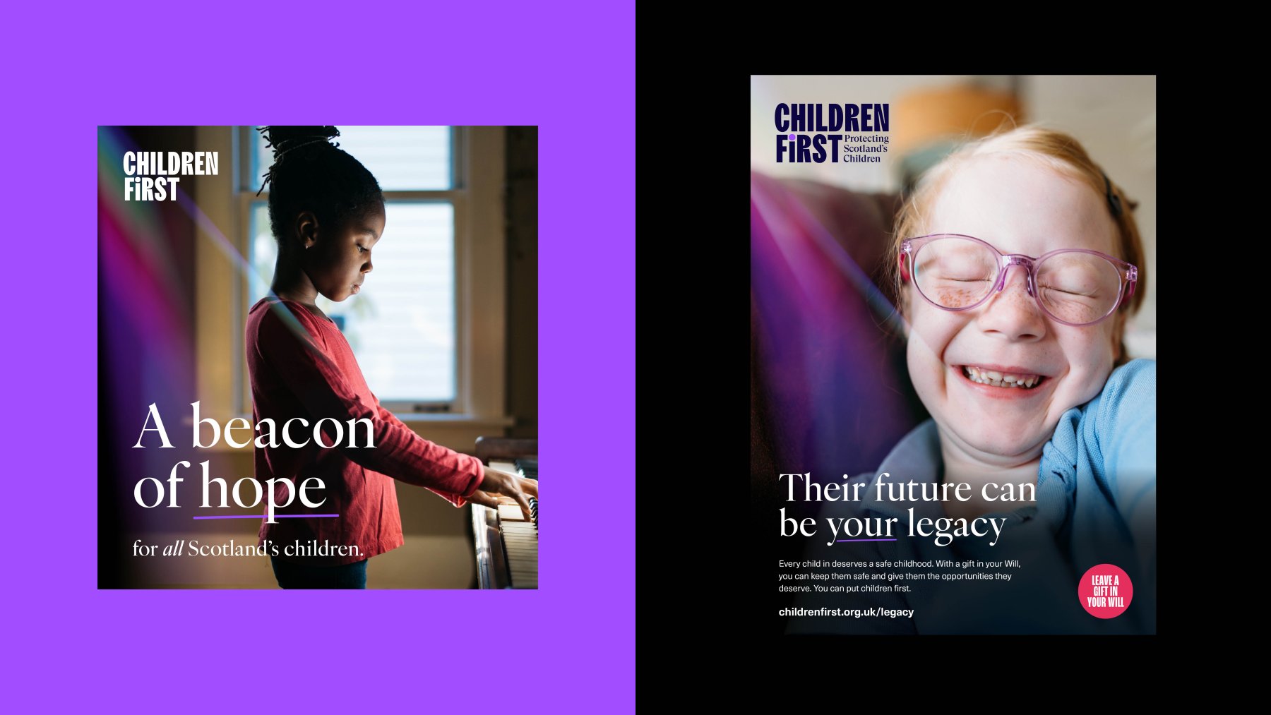 I took Children First back to its roots as a can-do campaigner, and developed a flexible identity with two tones of brand voice (activism & optimism) and a single simple purpose: Protecting Scotland’s children.